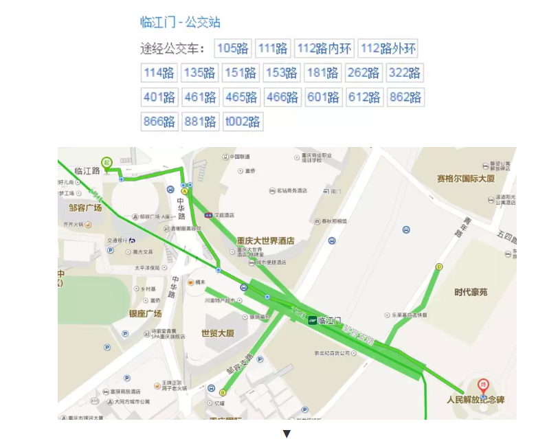 823路(官家琳站)—九杨路站—轻轨2号线(杨家坪)—临江门站(D)