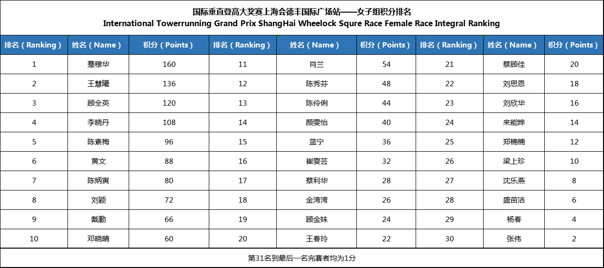 2019国际垂直登高大奖赛·上海会德丰国际广场站积分排名
